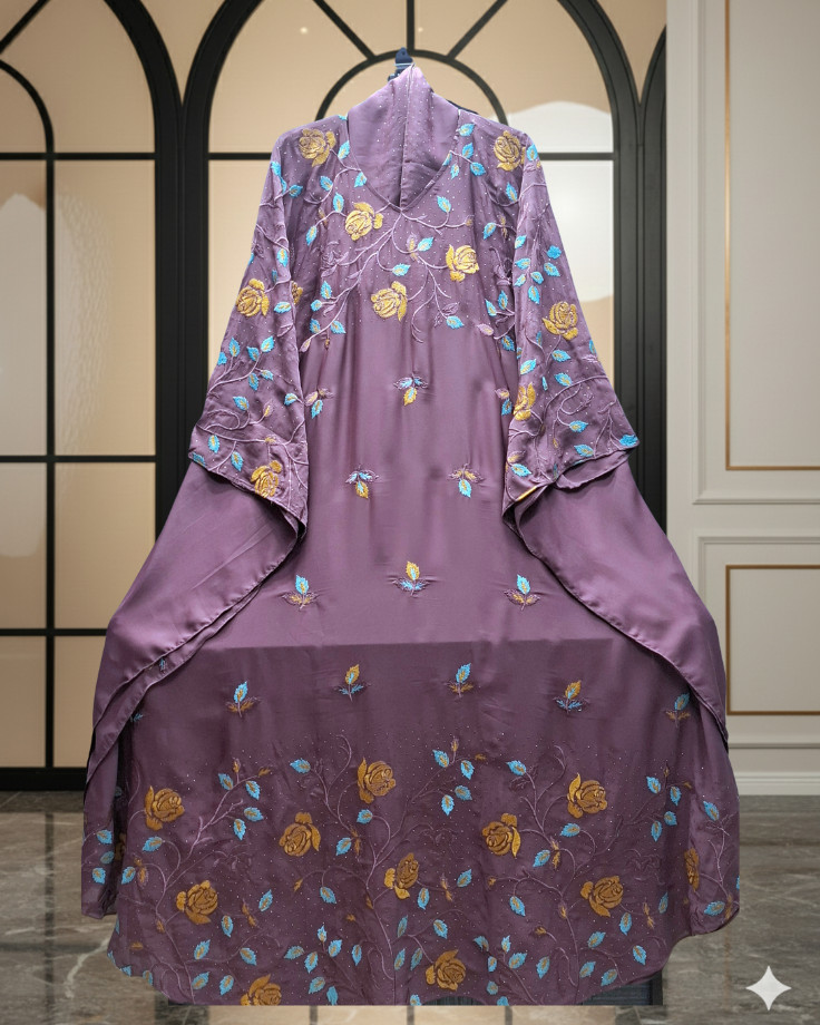 ✅আবায়ার সম্পুর্ন বডিতে চমৎকার এমব্রয়ডারী কাজ এবং উপরে ও নিচের অংশে হালকা ছিটানো স্টোনের কাজ করা।