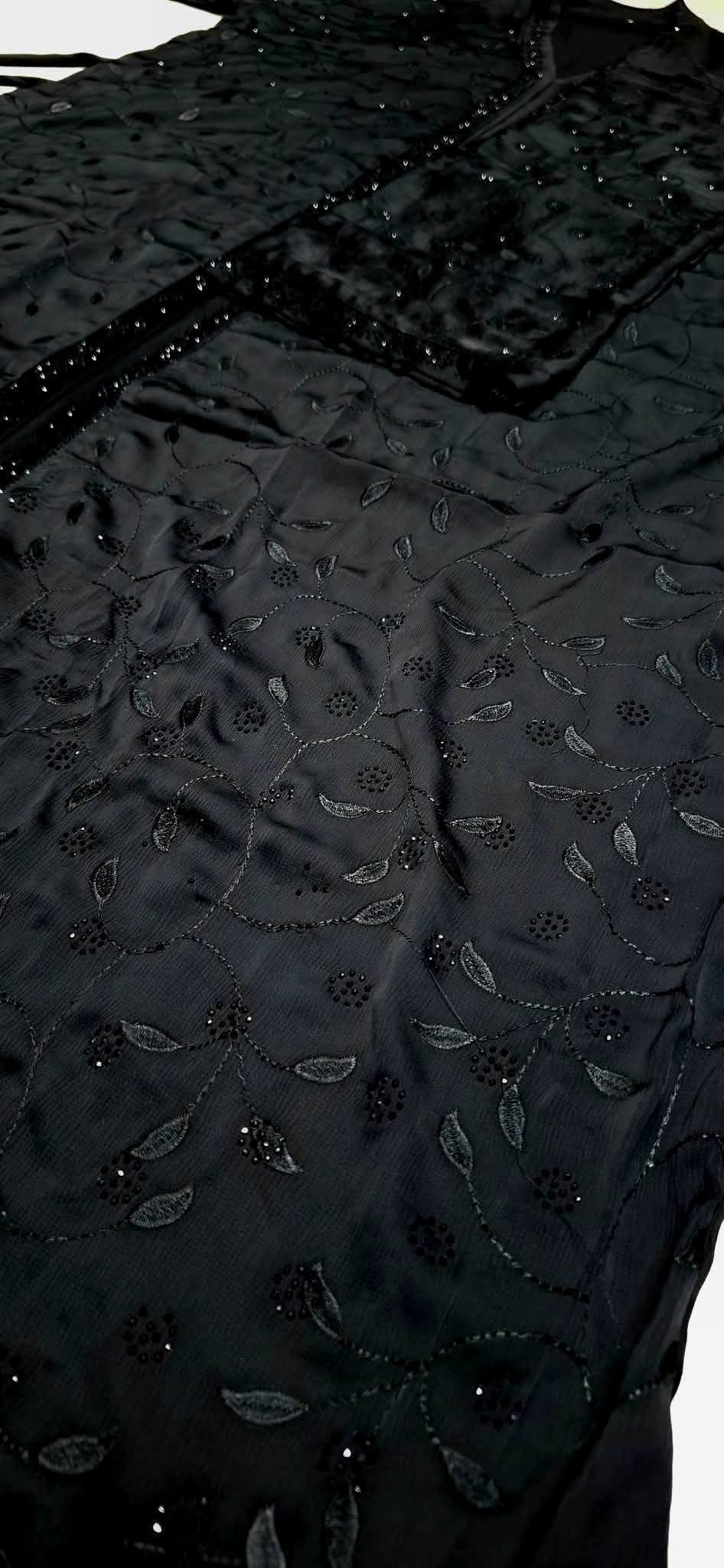 ✅বোরকার সামনের পার্টে সম্পুর্ন বডিতে এমব্রয়ডারী কাজ করা এবং উপরে ও নিচের অংশে ছিটানো স্টোনের কাজ করা।