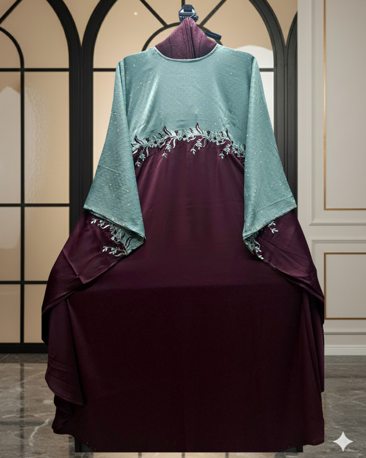 ✅আবায়ার মাঝখানে চমৎকার এমব্রয়ডারী কাজ এবং উপরে অংশে ছিটানো স্টোনের কাজ করা।