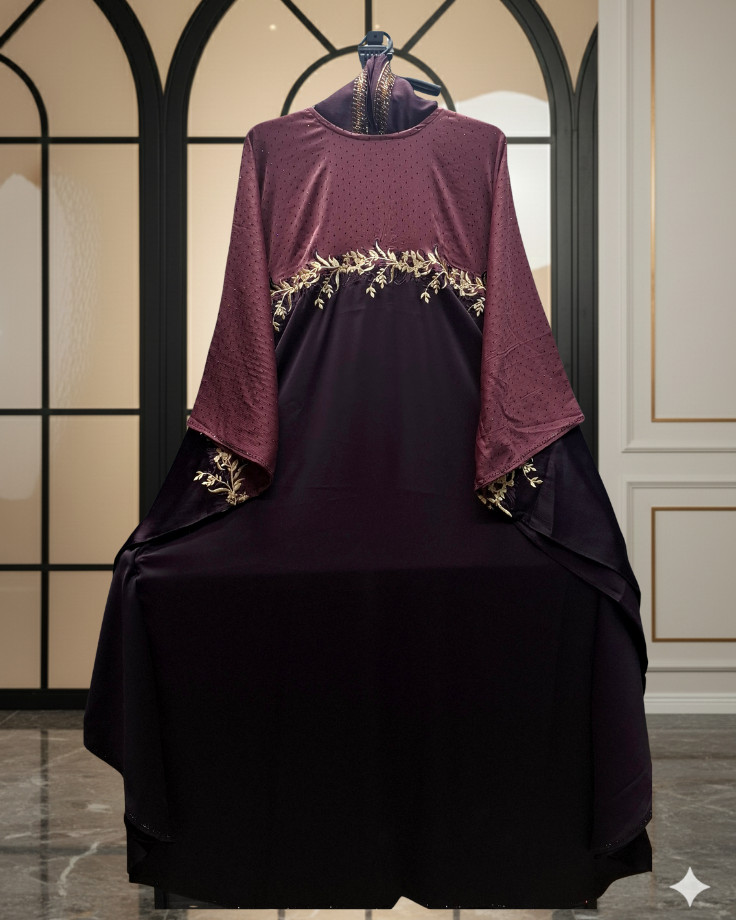 ✅আবায়ার মাঝখানে চমৎকার এমব্রয়ডারী কাজ এবং উপরে অংশে ছিটানো স্টোনের কাজ করা।