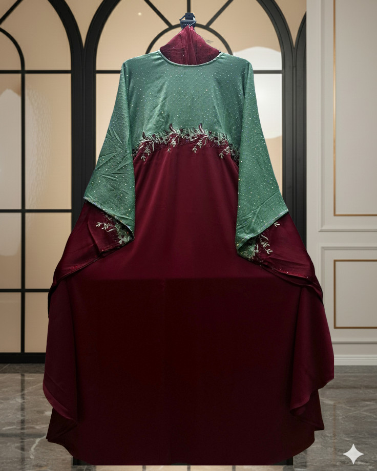 ✅আবায়ার মাঝখানে চমৎকার এমব্রয়ডারী কাজ এবং উপরে অংশে ছিটানো স্টোনের কাজ করা।