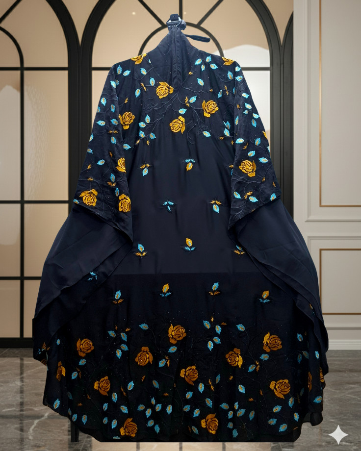 ✅আবায়ার সম্পুর্ন বডিতে চমৎকার এমব্রয়ডারী কাজ এবং উপরে ও নিচের অংশে হালকা ছিটানো স্টোনের কাজ করা।